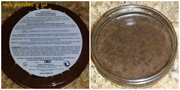 Por ahora sólo os puedo decir que huele de maravilla. También es tonificante. Ha sido realizado artesanalmente con pepita de uva blanca, variedad verdejo, azúcar moreno y aceite de semilla de uva. Uffff, no veo el momento de utilizarlo, jejeje.